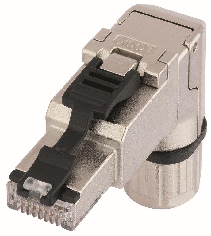 RJ45 field mountable Industrial Ethernet connector, straight or angled, IP20, qualified for up to 10 Gbit/s, colour-coded for TIA or PROFINET applications.