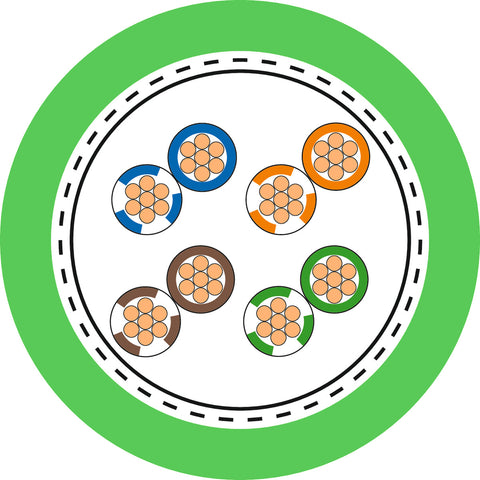 - SF/UTP: braid of tinned copper wire and plastic laminated aluminum foil as overall screening