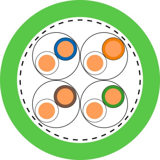 - S/FTP: copper braid as overall screening and pair screening with aluminium compound foil